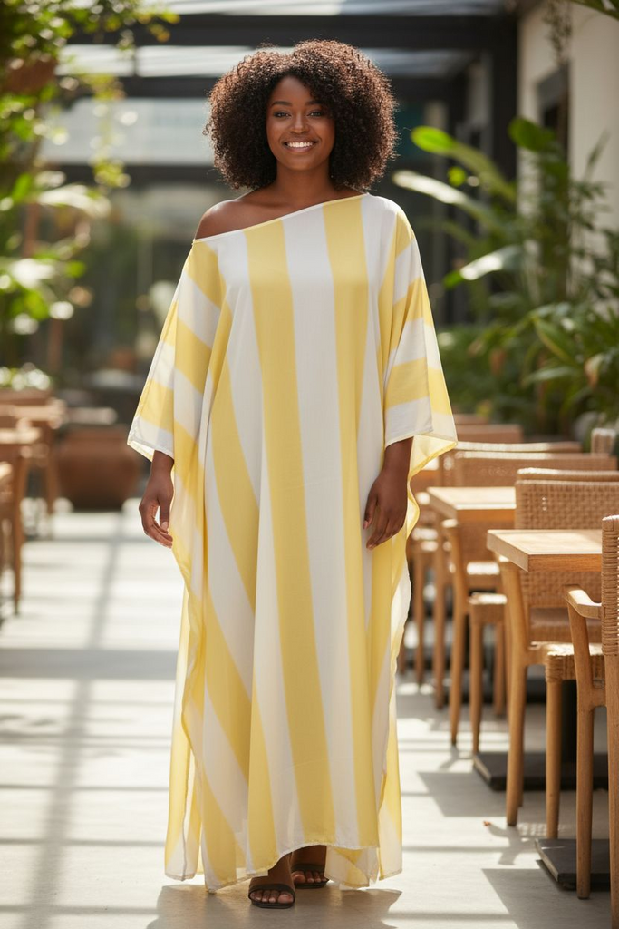 Dress is a flowing Boho-Chic piece designed for both elegance and comfort. Crafted from lightweight chiffo fabric (can be customized in silk or satin), it features wide draping sleeves, a relaxed silhouette, and details. The free-flowing cut makes it versatile for casual chic, resort wear, or evening occasions.
